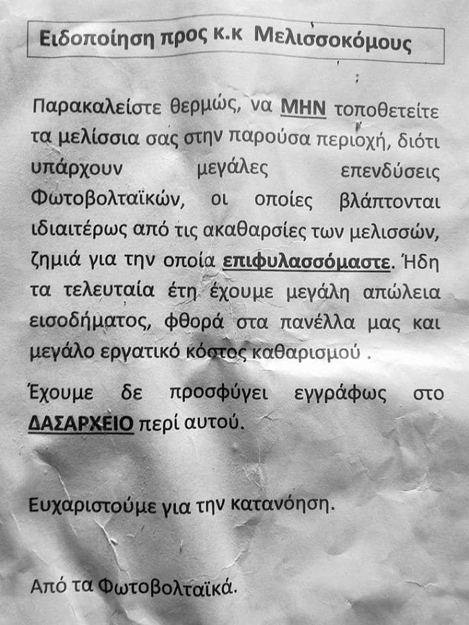 Ο ρόλος της μέλισσας στην διατροφική επάρκεια είναι νευραλγικός. Και όμως, ενώ όλοι μιλούν για την επισιτιστική κρίση που έρχεται, εμείς φυτεύουμε φωτοβολταϊκά και διώχνουμε τις μέλισσες!